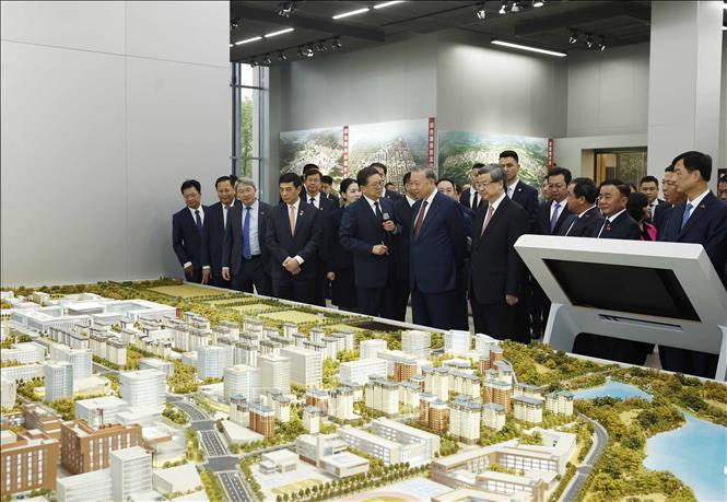 Tổng Bí thư, Chủ tịch nước Tô Lâm cùng Đoàn cấp cao Việt Nam khảo sát tại Khu khởi động của Khu mới Hùng An, tỉnh Hà Bắc (Trung Quốc). (Ảnh: THỐNG NHẤT/TTXVN)