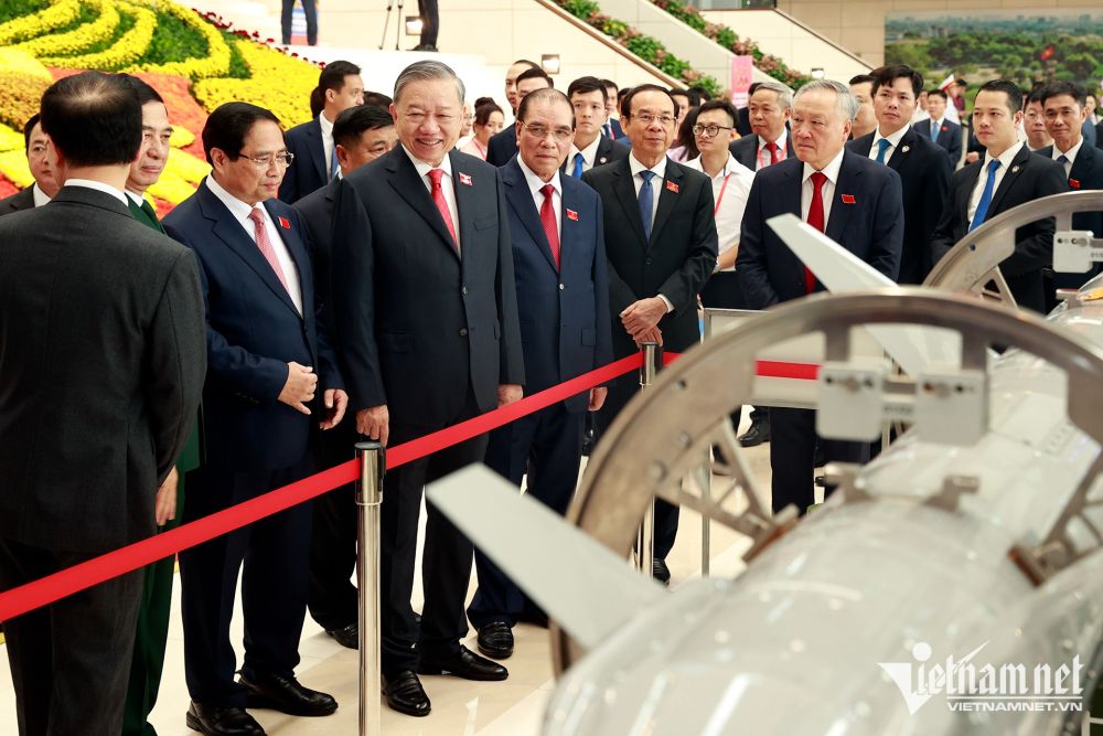 Tổng Bí thư Tô Lâm và các đại biểu xem tên lửa "Sông Hồng" tại triển lãm