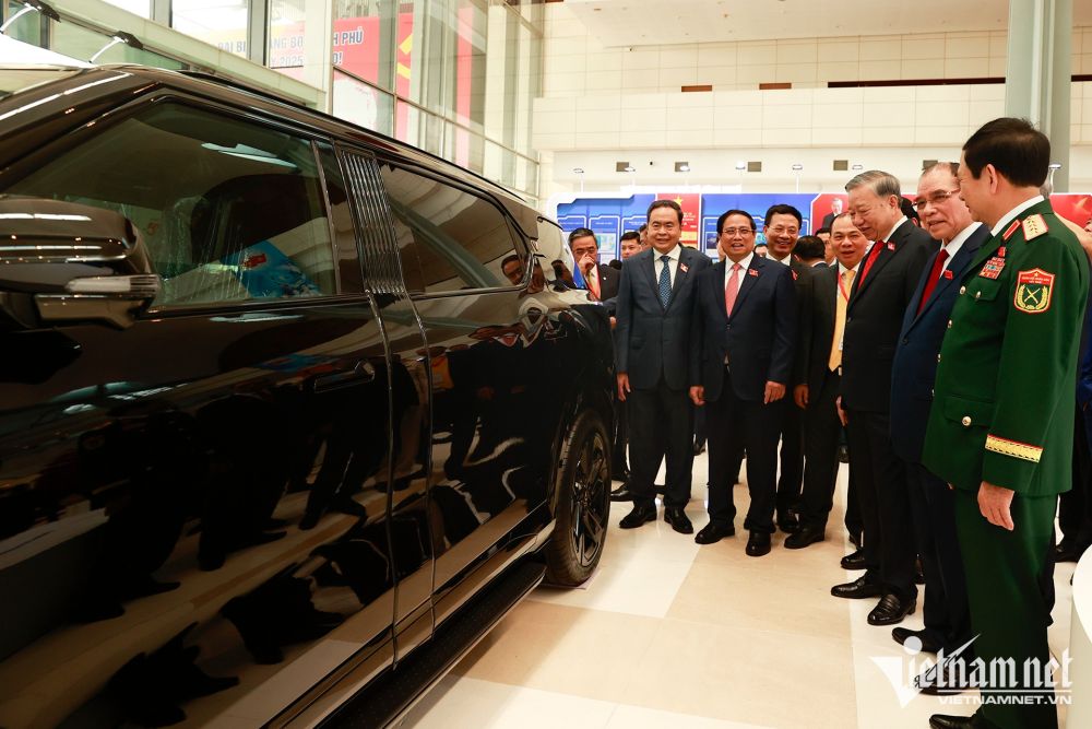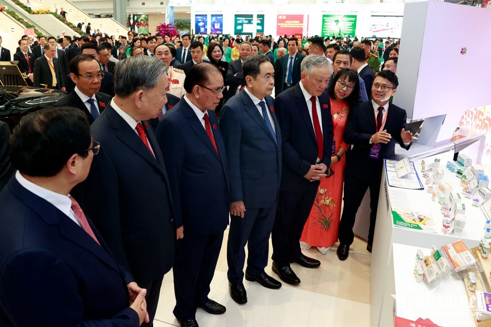Tổng Bí thư Tô Lâm và các đại biểu trải nghiệm một số sản phẩm được trưng bày tại triển lãm nhân dịp đại hội