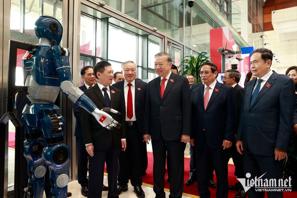 Tổng Bí thư tham quan robot, tên lửa tại Đại hội Đảng bộ Chính phủ