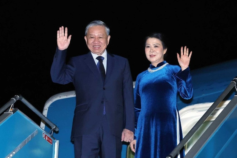 Tổng Bí thư Tô Lâm và phu nhân rời Hà Nội, lên đường thăm chính thức Anh. Ảnh: TTXVN