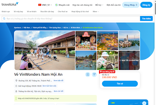 Việc đặt vé tham quan các khu vui chơi tại Đà Nẵng chưa bao giờ dễ dàng đến thế, đặc biệt là khi bạn sử dụng Traveloka - nền tảng đặt vé trực tuyến uy tín hàng đầu Đông Nam Á. Đặt vé qua Traveloka giúp bạn không chỉ tiết kiệm thời gian mà còn tận dụng các ưu đãi và khuyến mãi hấp dẫn.