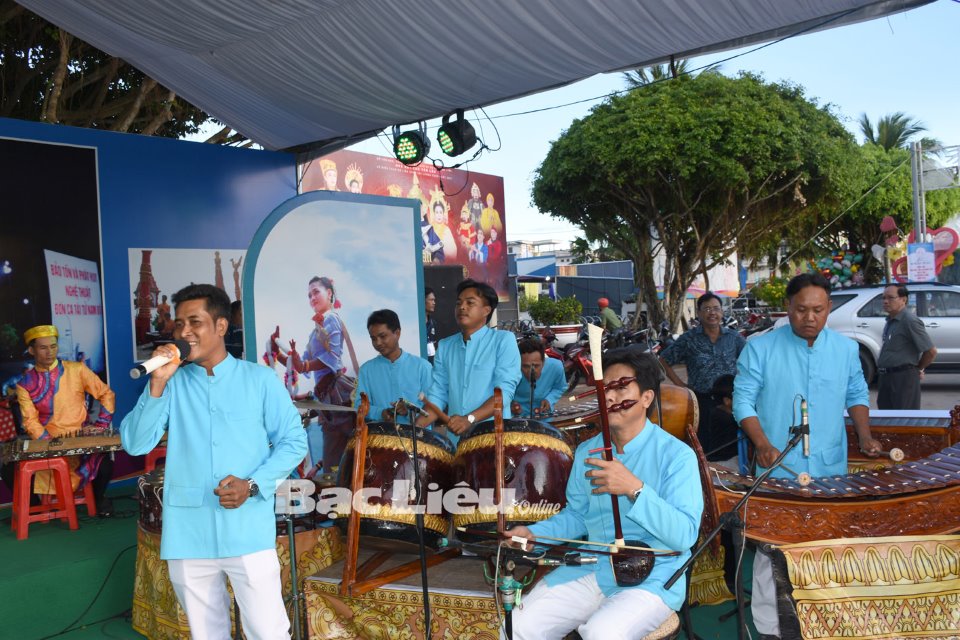 Biểu diễn nhạc ngũ âm phục vụ du khách tham quan lễ hội văn hóa được tổ chức tại TP. Bạc Liêu.
