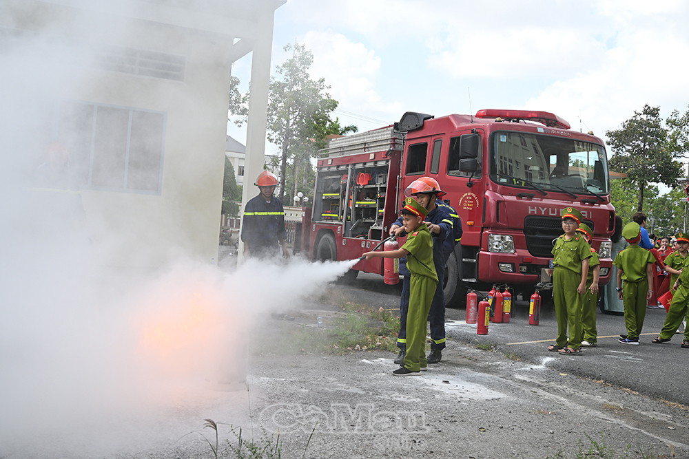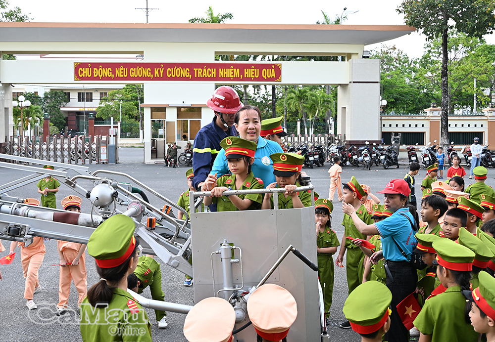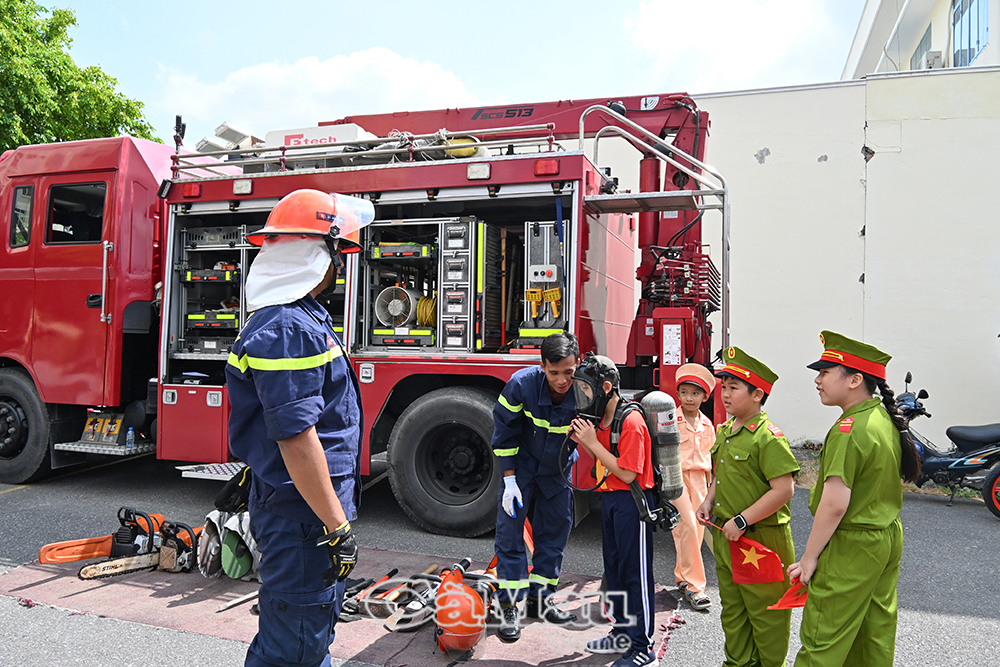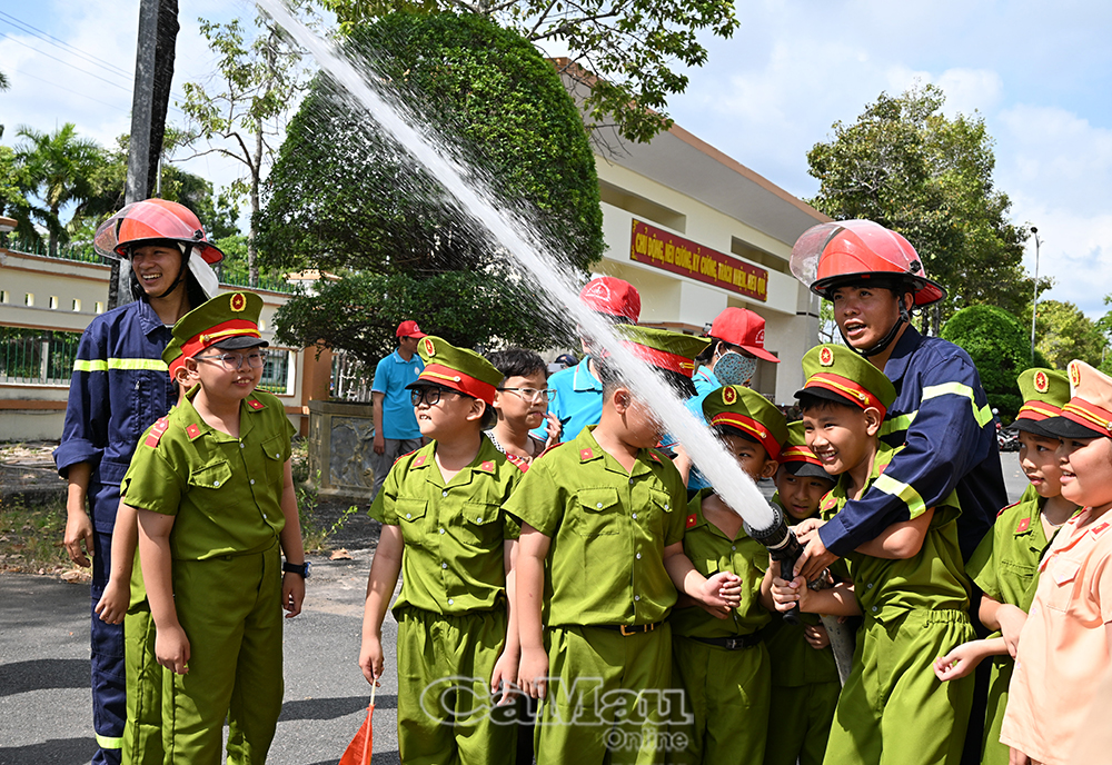 Trong phần trải nghiệm, học sinh được “hoá thân” thành những chiến sĩ nhí, tham gia thực hành kỹ năng phòng cháy, chữa cháy, cứu nạn cứu hộ; tìm hiểu quy tắc an toàn khi tham gia giao thông; đồng thời tham gia các trò chơi vận động tập thể sôi nổi.