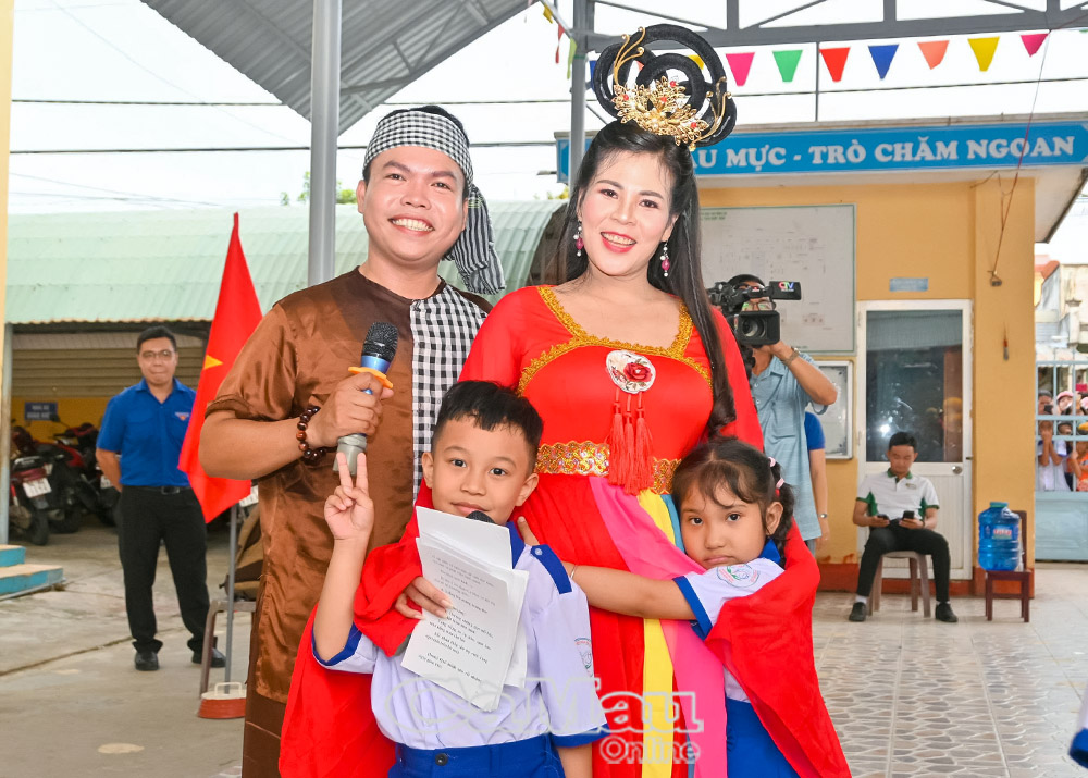 Em Bùi Mỹ Ðiều, học sinh Lớp 4A5, xúc động: "Tại điểm trường lẻ này, nhiều bạn có hoàn cảnh khó khăn, gia đình sống dựa vào việc mò cua, bắt ốc nên thiếu thốn điều kiện học tập. Năm nay, lễ hội Trung thu được tổ chức ngay tại điểm trường, chúng con được nhận quà bánh, lồng đèn, thật là vui. Con hứa sẽ học thật giỏi để không phụ lòng các cô chú vất vả vượt đường xa đến đây".