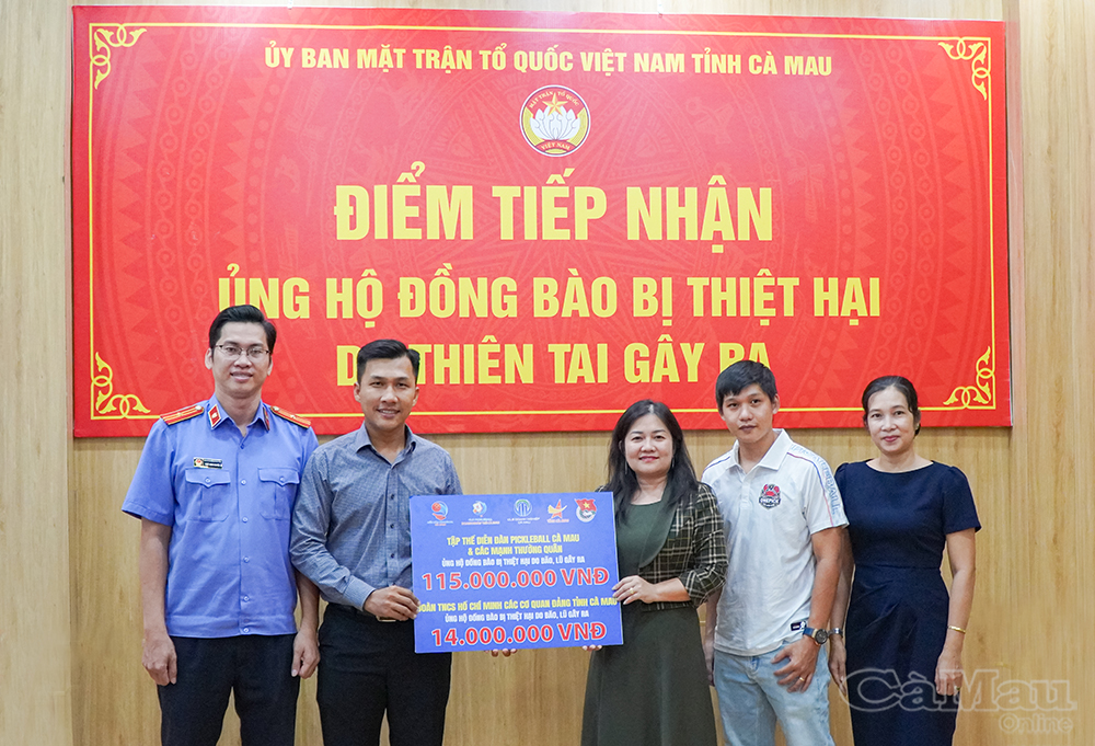 Chiều 2/12, ông Trần Quốc Sự, Chủ nhiệm CLB Doanh nghiệp Cà Mau, Chủ tịch Diễn đàn Pickleball Cà Mau cùng anh Ngô Minh Quyền, Phó Bí thư Đoàn Thanh niên các cơ quan Đảng tỉnh đã đến trao trực tiếp 129 triệu đồng cho Ban Thường trực Uỷ ban MTTQ Việt Nam tỉnh Cà Mau.