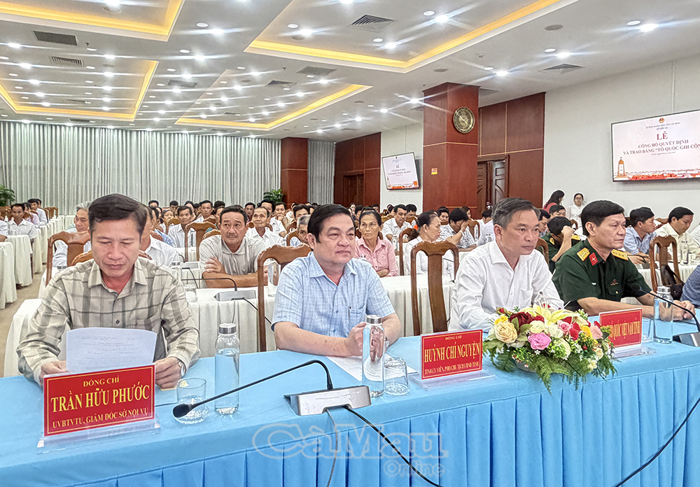 Tại buổi lễ, đồng chí Trần Hữu Phước, Uỷ viên Ban Thường vụ Tỉnh uỷ, Giám đốc Sở Nội vụ tỉnh Cà Mau đã công bố các quyết định của Thủ tướng Chính phủ về việc cấp bằng “Tổ quốc ghi công” cho 70 liệt sĩ. Đây là sự ghi nhận đặc biệt của Đảng và Nhà nước đối với những cống hiến, hy sinh to lớn của các anh hùng liệt sĩ trong sự nghiệp đấu tranh giải phóng dân tộc, bảo vệ Tổ quốc.