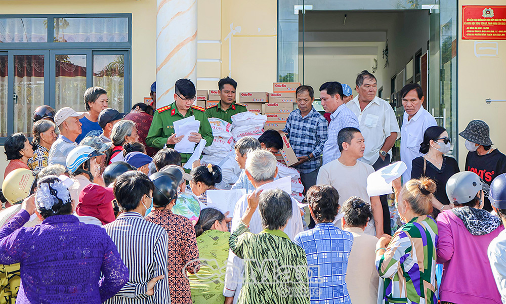 Niềm vui của người dân khó khăn trước sự quan tâm của công an địa phương và các mạnh thường quân.