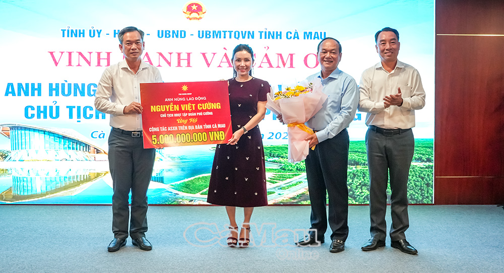 Dịp này, Anh hùng Lao động Nguyễn Việt Cường, Chủ tịch HĐQT Tập đoàn Phú Cường ủng hộ công tác an sinh xã hội trên địa bàn tỉnh Cà Mau 5 tỷ đồng, nhằm hỗ trợ triển khai thực hiện các chương trình an sinh xã hội trên địa bàn tỉnh, góp phần chăm lo đời sống cho các đối tượng chính sách, người có công.