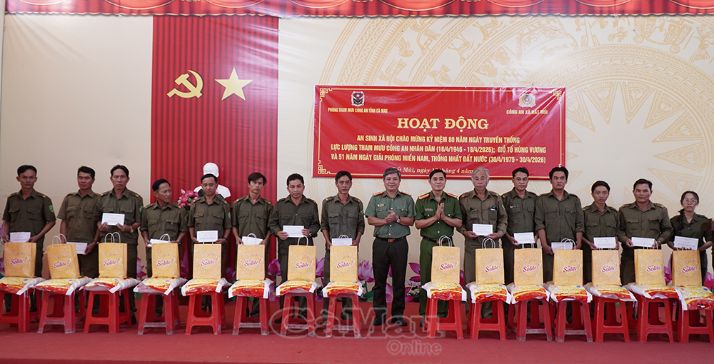 100 suất quà được trao cho các đối tượng: người có công với cách mạng, hộ dân tộc thiểu số, hội viên Hội Cựu công an nhân dân; lực lượng tham gia bảo vệ an ninh trật tự ở cơ sở và các gia đình có hoàn cảnh khó khăn trên địa bàn xã Đất Mũi.