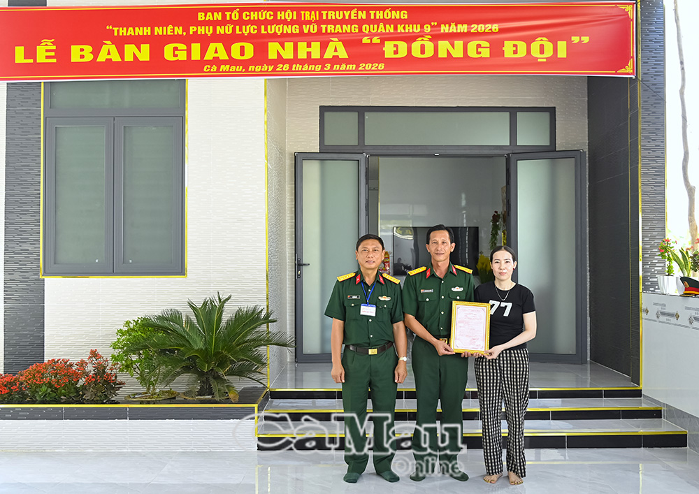 Theo đó, căn “Nhà đồng đội” trị giá 60 triệu đồng được bàn giao cho Trung tá Lê Thành Phước, Tiểu đoàn trưởng Tiểu đoàn 2, Trung đoàn 894 (Bộ CHQS tỉnh Cà Mau), có hoàn cảnh khó khăn về nhà ở. Căn nhà được xây dựng kiên cố, khang trang trên phần đất gia đình tại ấp Ninh Hòa, xã Ninh Quới.