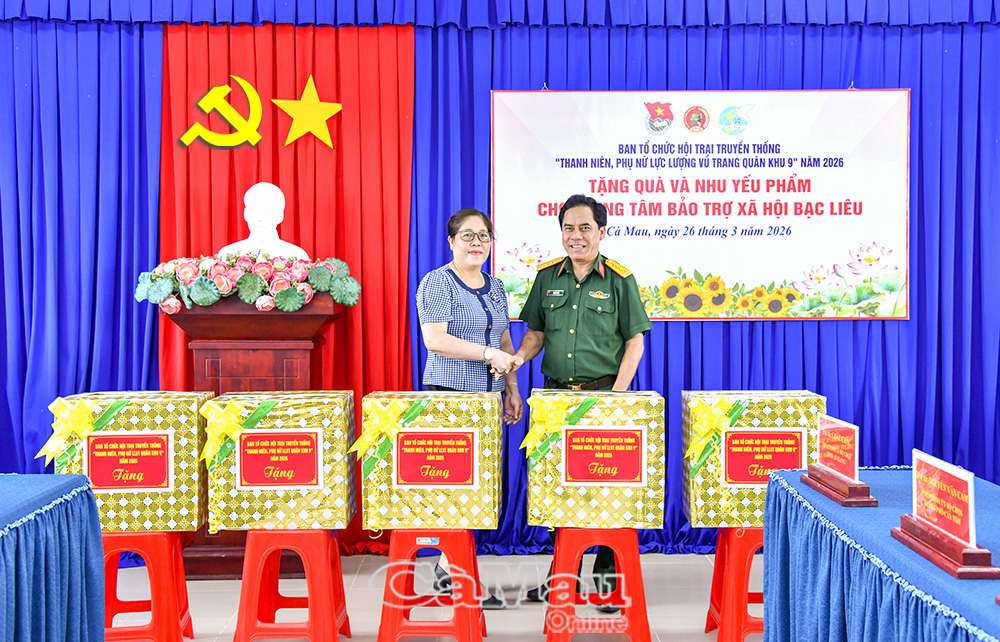 Sáng 26/3, trong khuôn khổ Hội trại truyền thống “Thanh niên, phụ nữ lực lượng vũ trang Quân khu 9” năm 2026, Ban Tổ chức đã triển khai các hoạt động ý nghĩa tại tỉnh Cà Mau, gồm dâng hương tưởng niệm Chủ tịch Hồ Chí Minh và thực hiện công tác an sinh xã hội.