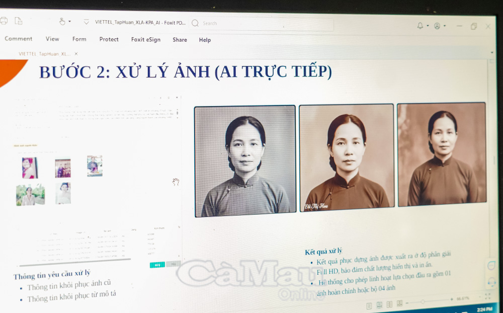 Chị Võ Tuyết Ngân, Bí thư Ðoàn Trường Cao đẳng Cộng đồng Cà Mau, cho biết: "Hiện tại, số lượng ảnh cần phục dựng rất lớn, nếu không có giải pháp hiệu quả sẽ mất nhiều thời gian. Do đó, cần có giải pháp, từ việc lên kế hoạch triển khai, phương pháp lấy thông tin, thu thập dữ liệu, thực hiện phục dựng, đến việc trao đổi với gia đình Mẹ VNAH và liệt sĩ để có bức ảnh hoàn chỉnh nhất. Quy trình thực hiện phải được quản lý và tạo thành cơ sở dữ liệu. Ðây không phải là nhiệm vụ dễ dàng, cần sự quyết tâm và trách nhiệm cao. Hiện chúng tôi đang trao đổi với Viettel về phần mềm phục dựng ảnh, nhằm thống nhất giải pháp, phương pháp thực hiện để đạt hiệu quả tốt nhất. Bước đầu mang lại kết quả rất khả quan. Nhiều gia đình Mẹ VNAH và liệt sĩ bày tỏ niềm vui, sự xúc động khi được trao lại những bức ảnh rõ nét. Ðó không chỉ là kỷ vật gia đình mà còn là một phần lịch sử được gìn giữ cho các thế hệ mai sau. Chúng tôi sẽ nỗ lực và cố gắng phục dựng các bức ảnh tốt nhất, rút ngắn thời gian thực hiện. Ðây cũng là tấm lòng tri ân của chúng tôi với thế hệ đi trước, đặc biệt đối với những Mẹ VNAH”.