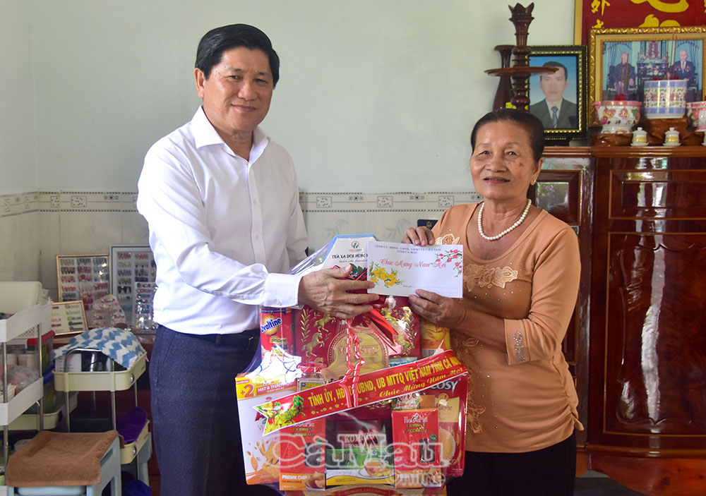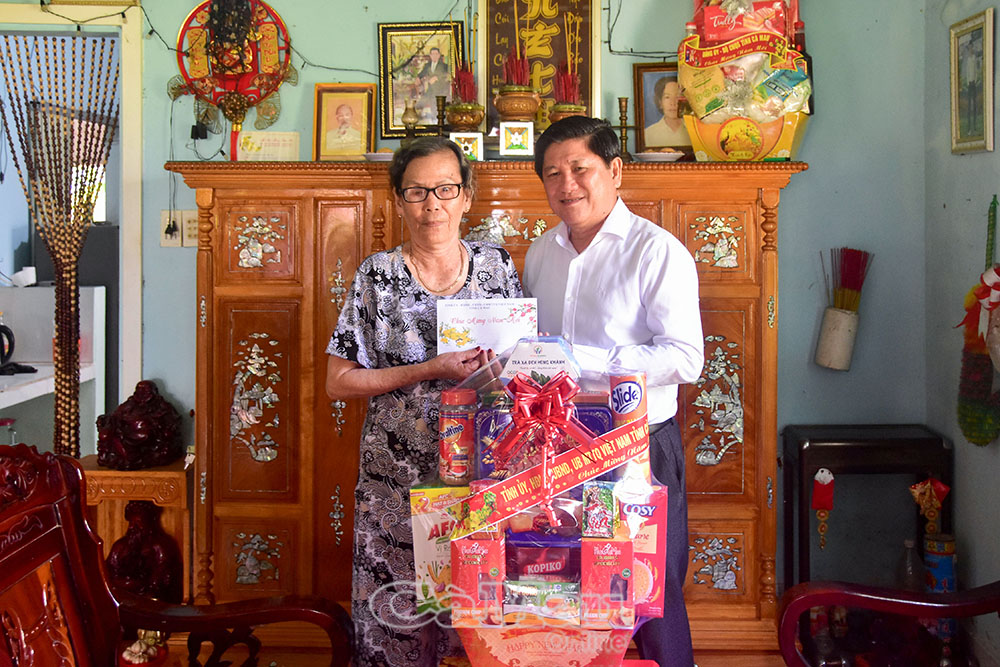 Phó Chủ tịch UBND tỉnh Lê Văn Sử trao quà Tết cho bà Hồ Việt Thuỷ, thương binh 4/4, vợ liệt sĩ, người hoạt động kháng chiến bị địch bắt tù đày.