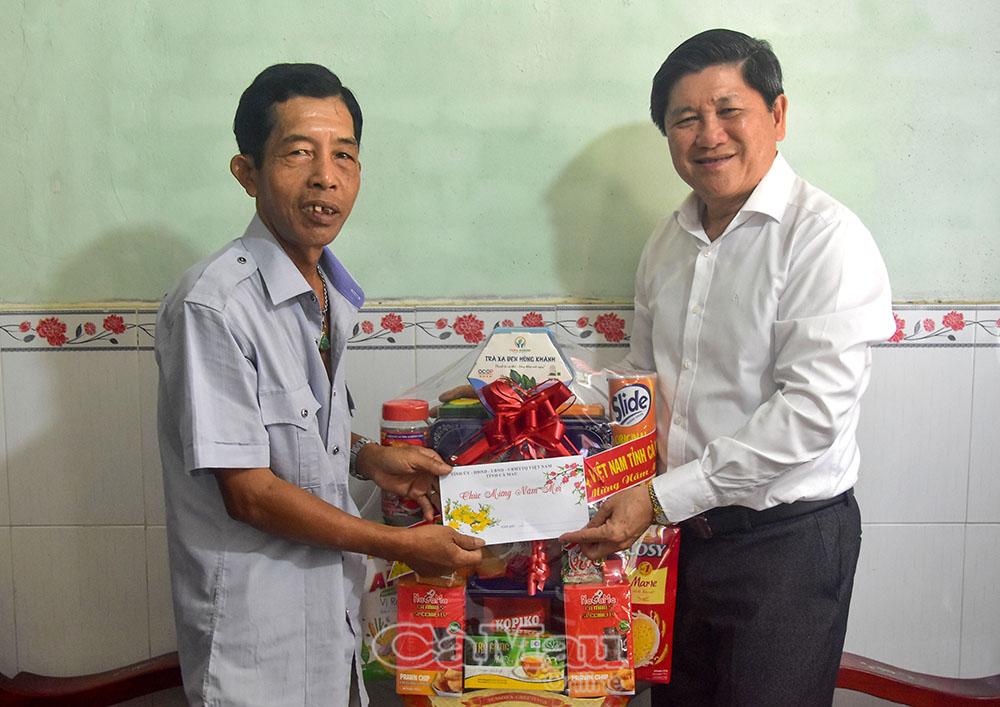 Dịp này, Phó Chủ tịch UBND tỉnh Lê Văn Sử đã trao tặng mỗi gia đình phần quà Tết của Tỉnh uỷ, HĐND, UBND, Uỷ ban MTTQ Việt Nam tỉnh Cà Mau.