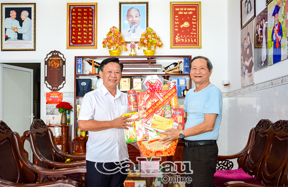 Đồng chí Hồ Trung Việt chúc Tết đồng chí Quảng Trọng Ninh, nguyên Uỷ viên Ban Thường vụ Tỉnh uỷ, nguyên Trưởng Ban Dân vận Tỉnh uỷ, nguyên Chủ tịch Uỷ ban MTTQ Việt Nam tỉnh Bạc Liêu (cũ).