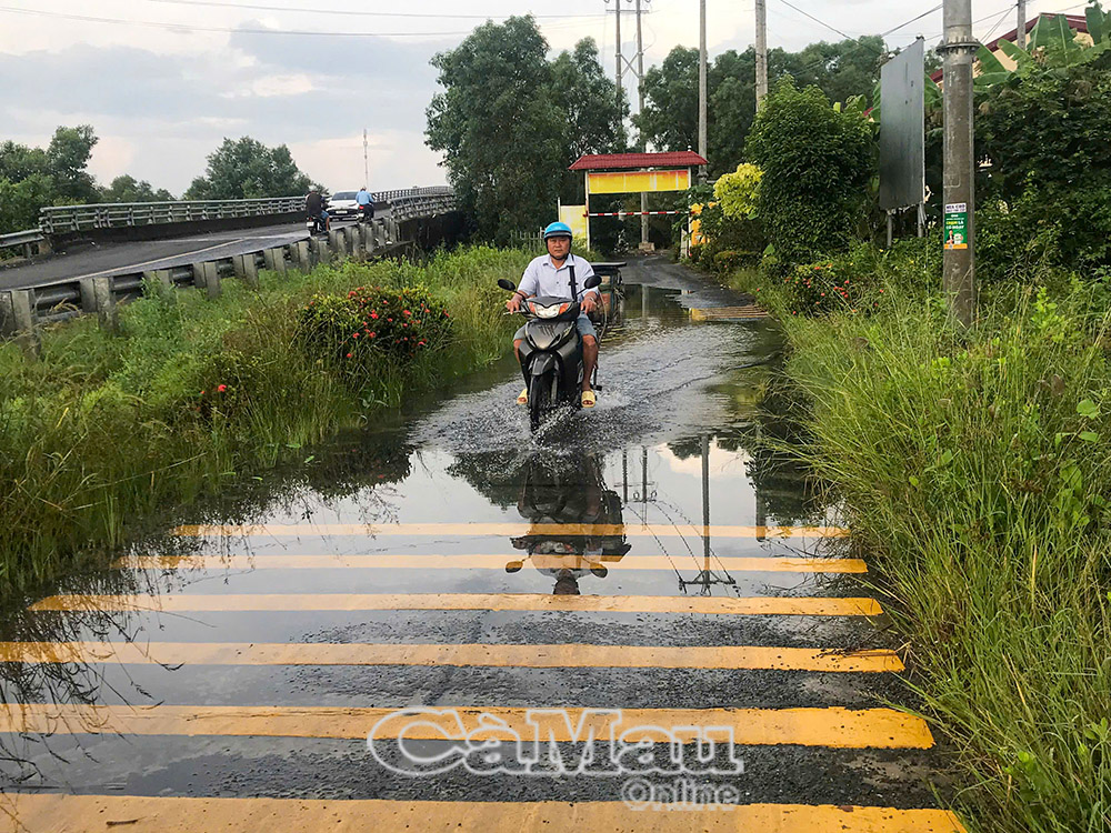 Tuyến lộ Mương Điều B xuất hiện nhiều đoạn bị tràn ngập, gây khó khăn cho người và phương tiện qua lại.
