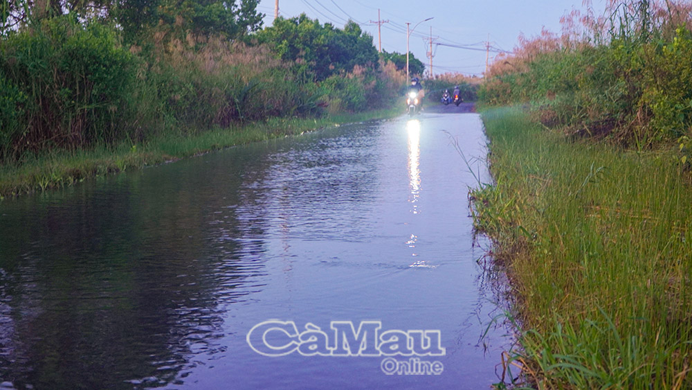 Khoảng 2 giờ 30 phút rạng sáng 6/11, triều cường dâng cao đã làm tràn một số tuyến đường giao thông trên địa bàn xã Năm Căn. Nước lên nhanh khiến nhiều đoạn đường thấp bị ngập, gây khó khăn cho việc đi lại của người dân.