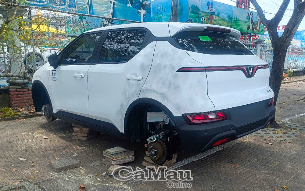 Chiếc xe của anh M.V.U bị tháo mất 4 bánh khi đậu trên vỉa hè đường Trần Huỳnh, phường Bạc Liêu, trước Nhà thiếu nhi Phùng Ngọc Liêm.