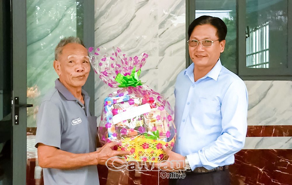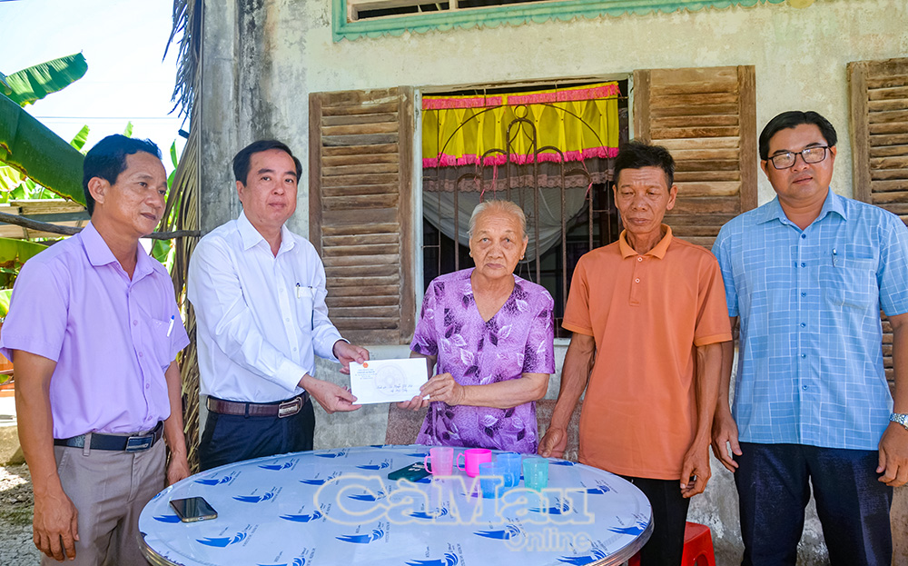 Ông Nguyễn Ðồng Khởi, Phó Chủ tịch UBND Xã Hồng Dân, tặng quà tri ân gia đình ông Dương Văn Dũng.