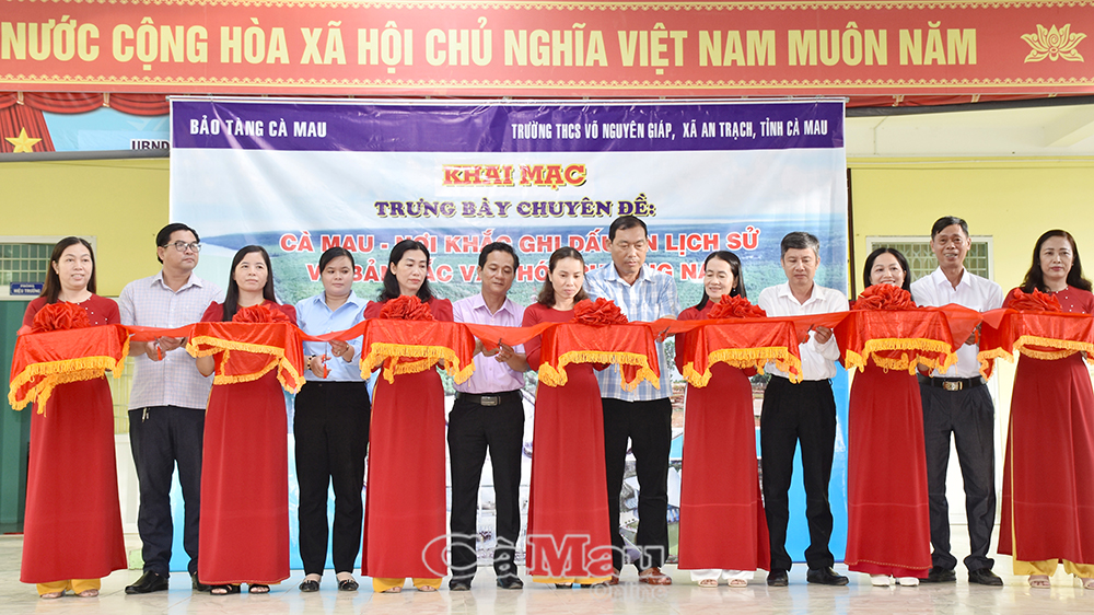 Sáng 15/12, Bảo tàng tỉnh Cà Mau phối hợp với Đảng uỷ, UBND xã An Trạch và Trường THCS Võ Nguyên Giáp tổ chức khai mạc trưng bày triển lãm chuyên đề “Cà Mau - Nơi khắc ghi dấu ấn lịch sử và bản sắc văn hóa phương Nam”.