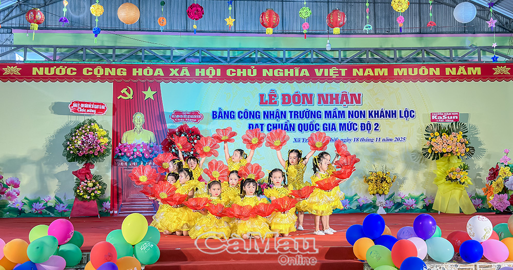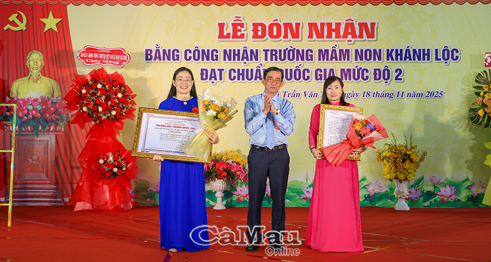 Báo Cà Mau Chiều 18/11, xã Trần Văn Thời long trọng tổ chức Lễ Đón nhận Bằng Công nhận Trường Mầm non Khánh Lộc đạt chuẩn Quốc gia mức độ 2. Đây là niềm vui lớn, đầy tự hào của Đảng bộ, chính quyền, Nhân dân xã Trần Văn Thời và tập thể cán bộ, giáo viên Trường Mầm non Khánh Lộc.