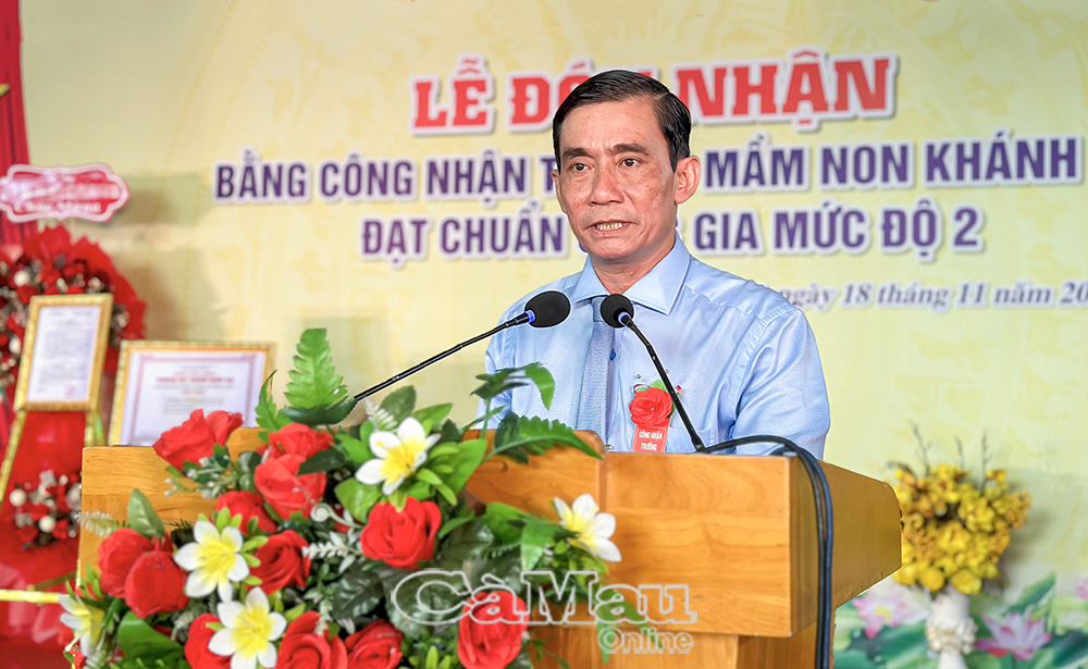 Phát biểu tại buổi lễ, TS. Lê Hoàng Dự, Phó Giám đốc Sở GD&ĐT tỉnh Cà Mau chúc mừng và ghi nhận những thành tích mà Trường Mầm non Khánh Lộc đã đạt được. Ông đánh giá cao tinh thần nỗ lực, trách nhiệm và sự phối hợp hiệu quả của Đảng bộ, chính quyền, Nhân dân và tập thể nhà trường trong quá trình xây dựng trường đạt chuẩn quốc gia mức độ 2.