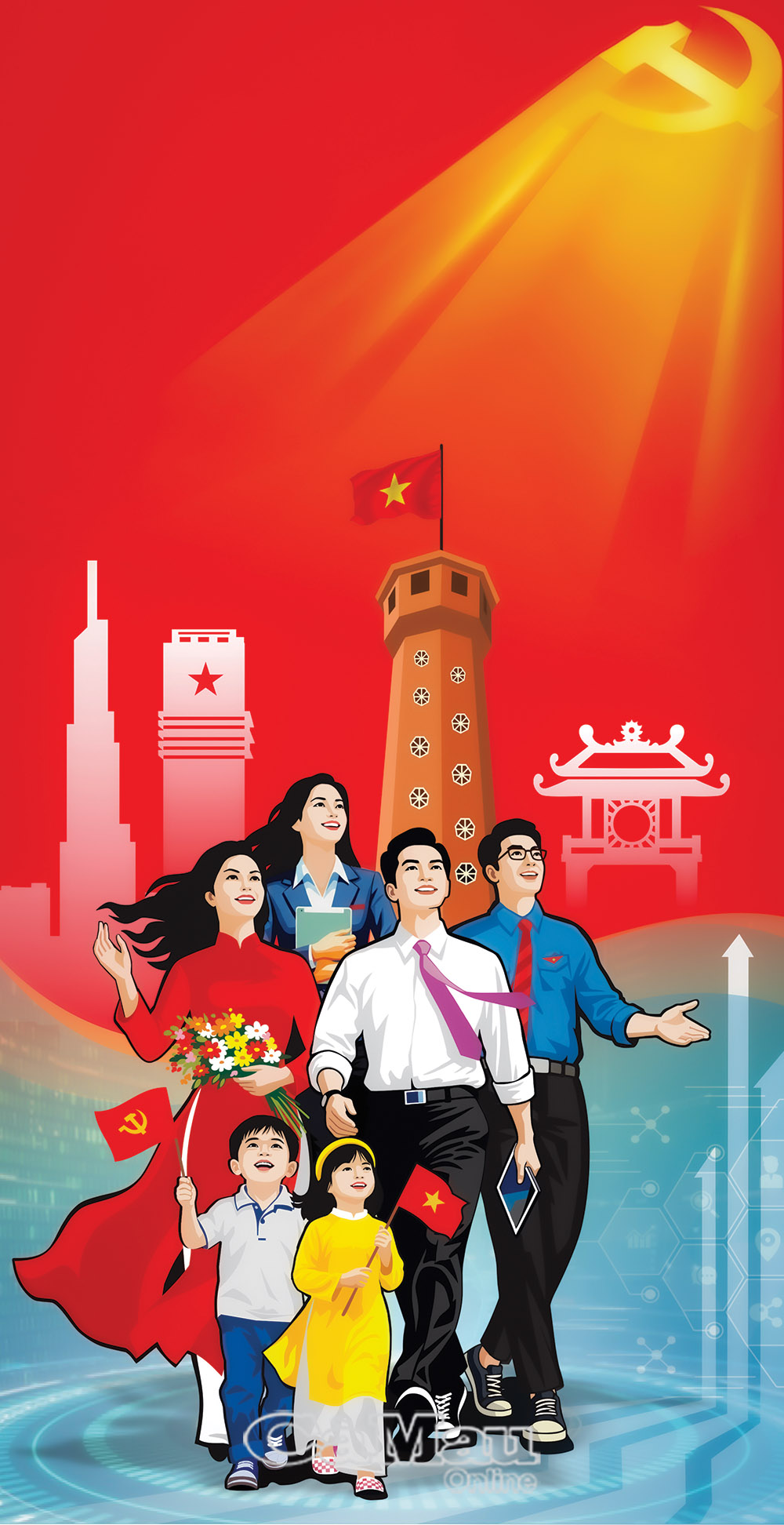 Trên đường phát triển phú cường, Việt Nam mang bản sắc trong thế giới đa dạng nhưng thống nhất: Nhân dân là trung tâm, độc lập - tự chủ là nguyên tắc, văn hoá là nền tảng, phú cường - hạnh phúc là mục tiêu cao cả - đất nước nhịp bước cùng thời đại, dưới ngọn cờ vinh quang của Ðảng.
