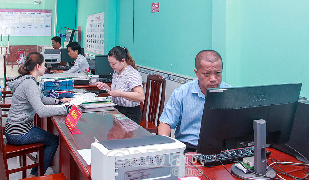 Cà Mau đang xây dựng đội ngũ cán bộ bản lĩnh, trí tuệ, có sức và thực sự gần dân. (Ảnh: Công chức xã Hưng Hội giải quyết thủ tục hành chính cho công dân).