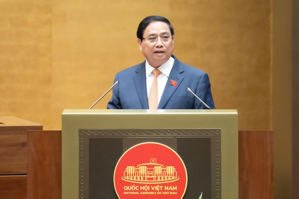 Thủ tướng Phạm Minh Chính báo cáo trước Quốc hội. Ảnh: Quốc hội