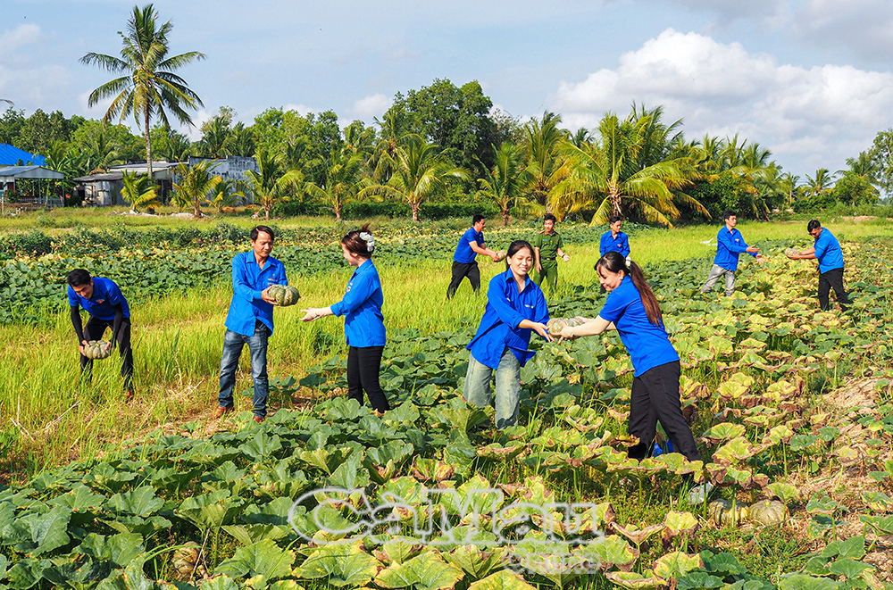 Hình ảnh đẹp của đoàn viên, thanh niên xã Khánh Bình hỗ trợ thu hoạch, vận chuyển, "giải cứu" nông sản giúp bà con tại ấp Minh Hà, xã Khánh Bình