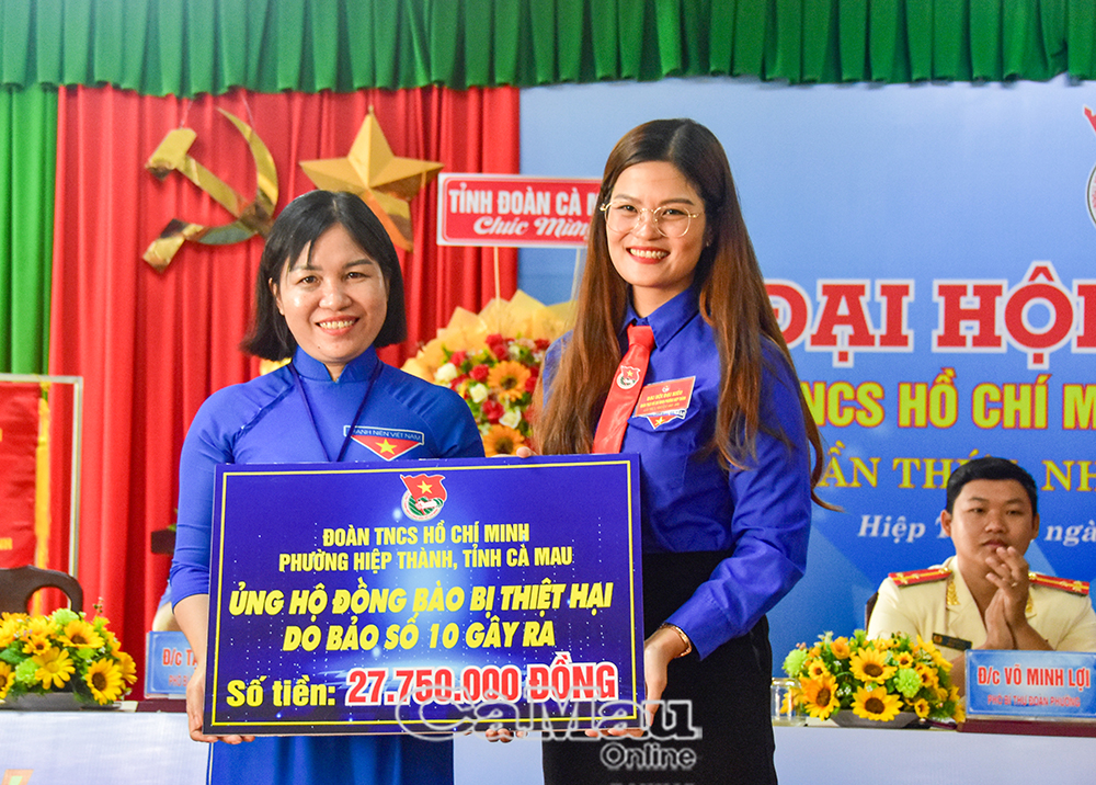Đoàn phường trao số tiền hơn 27 triệu đồng ủng hộ đồng bào bị thiệt hại do bão số 10 cho đại diện Uỷ ban MTTQ Việt Nam phường.