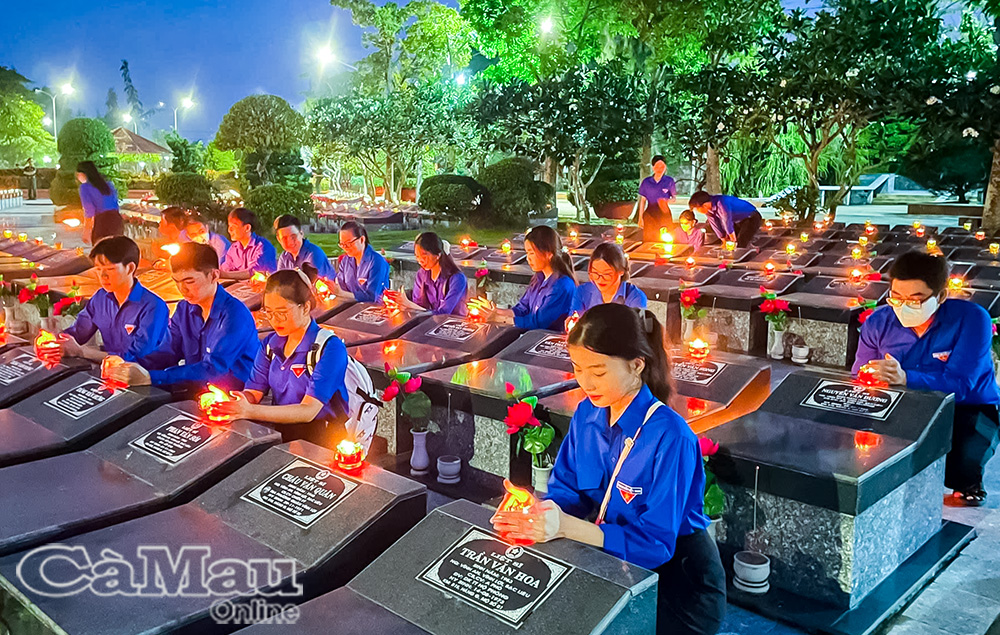 Tuổi trẻ Trường Đại học Bạc Liêu thắp nến tri ân các Anh hùng liệt sĩ tại Nghĩa trang liệt sĩ tỉnh (xã Hoà Bình).