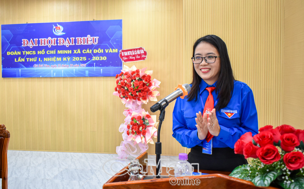 Phát biểu chỉ đạo tại Đại hội, đồng chí Nguyễn Trang Anh Thư, Phó Bí thư Tỉnh đoàn, Chủ tịch Hội Sinh viên Việt Nam tỉnh Cà Mau biểu dương kết quả đạt được của Đoàn TNCS Hồ Chí Minh xã Cái Đôi Vàm trong nhiệm kỳ qua, đồng thời định hướng một số nhiệm vụ trọng tâm trong thời gian tới.