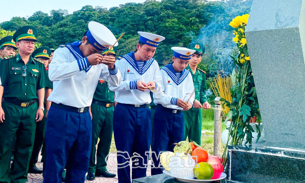 Tại Bia tưởng niệm Khởi nghĩa Hòn Khoai, cán bộ, chiến sĩ và đại diện các đơn vị đang thực hiện nhiệm vụ trên đảo trang nghiêm, thành kính dâng hương, dâng hoa, dành phút mặc niệm tưởng nhớ và tri ân sâu sắc công lao to lớn của các anh hùng liệt sĩ đã anh dũng hy sinh vì sự nghiệp đấu tranh giải phóng dân tộc.