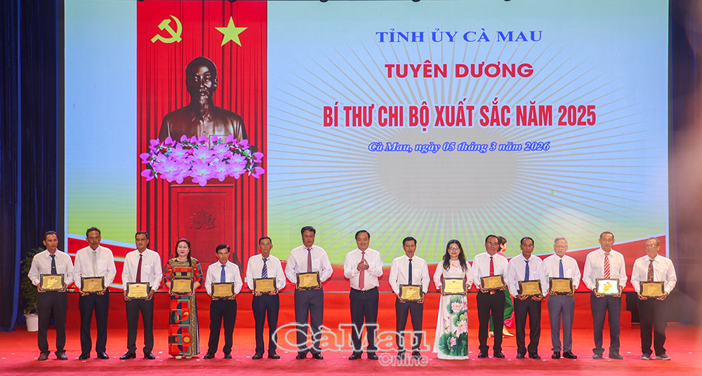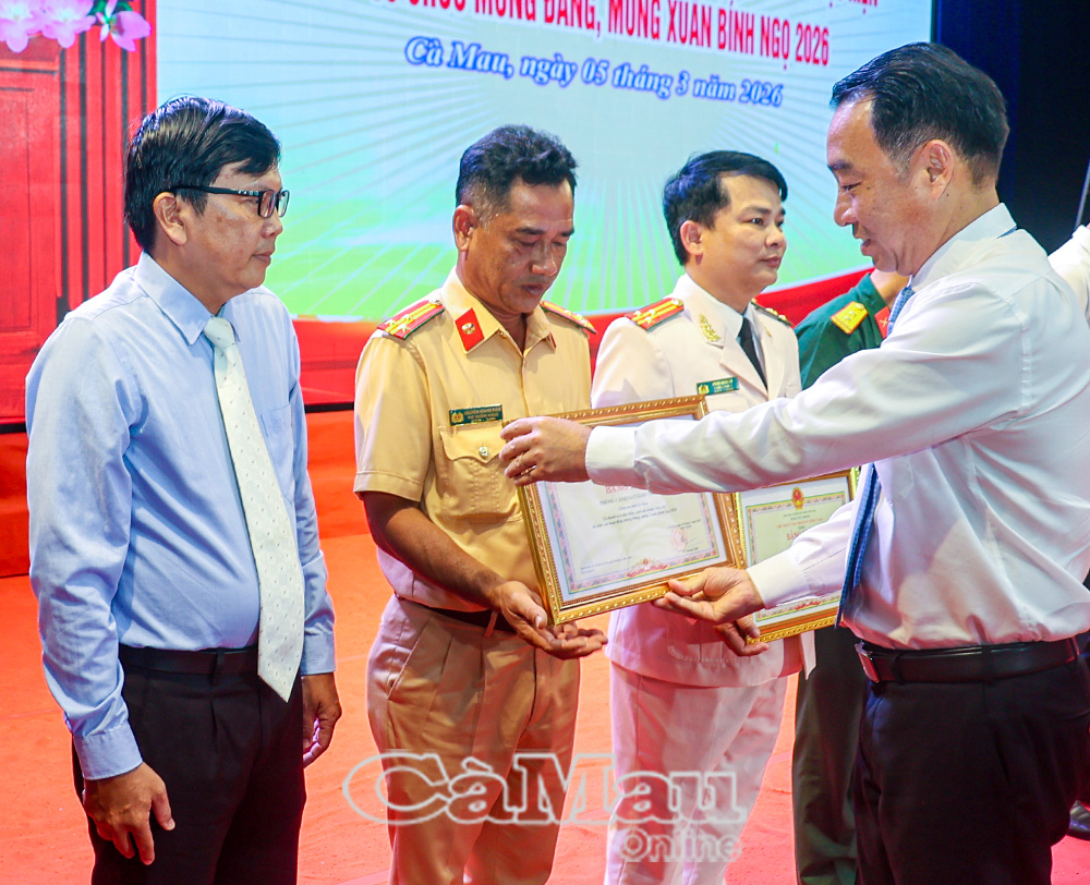 Chiều 5/3, tại Trung tâm Hội nghị tỉnh, Tỉnh uỷ - HĐND - UBND - Uỷ ban MTTQ Việt Nam tỉnh Cà Mau long trọng tổ chức họp mặt tuyên dương, khen thưởng các tổ chức Đảng, bí thư chi bộ, đảng viên và các tập thể, cá nhân đạt thành tích xuất sắc, tiêu biểu năm 2025.