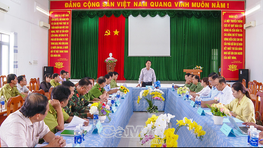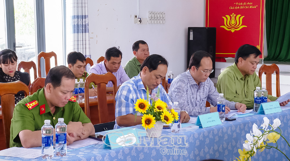 Sau kiểm tra thực địa, Chủ tịch UBND tỉnh Lữ Quang Ngời làm việc với Sở Nông nghiệp và Môi trường, Vườn Quốc gia U Minh Hạ, các đơn vị chủ rừng và địa phương liên quan, để nghe báo cáo tình hình rừng và mức độ sẵn sàng của các phương án ứng phó.