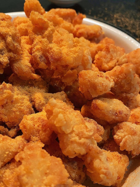 Những miếng thịt gà vàng ươm với lớp vỏ giòn tan, bên trong ngọt mềm, thấm đẫm phô-mai béo ngậy, có thể chấm kèm với tương ớt, tương cà để tăng thêm hương vị thơm ngon, hấp dẫn của món ăn.