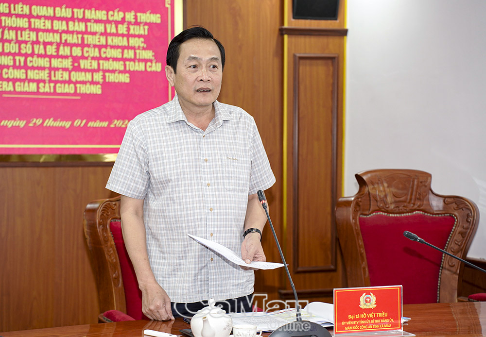 Phát biểu tại cuộc họp, Đại tá Hồ Việt Triều, Giám đốc Công an tỉnh Cà Mau đề nghị các đơn vị liên quan phối hợp rà soát, tham mưu triển khai đúng quy định pháp luật, bảo đảm đồng bộ, hiệu quả, tiết kiệm, tránh chồng chéo, lãng phí; đồng thời khảo sát kỹ lưỡng các vị trí lắp đặt camera giám sát giao thông đường bộ và đường thuỷ nội địa.