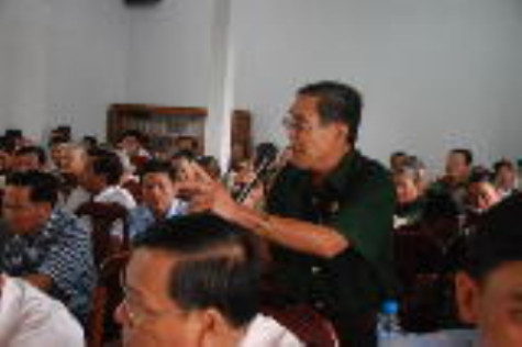 | Cử tri Nguyễn Thành Vĩnh, cử tri huyện Cái Nước, trình bày những bức xúc ở địa phương đến đoàn đại biểu HĐND tỉnh trong buổi tiếp xúc. Ảnh: Nguyễn Phú |