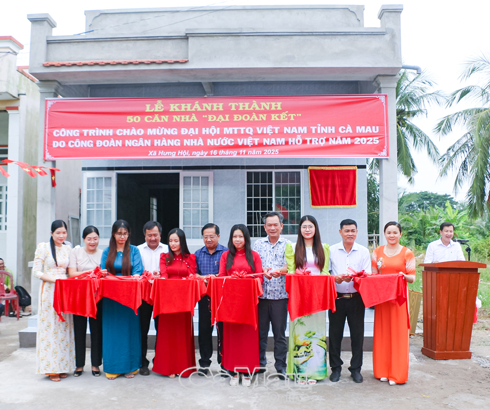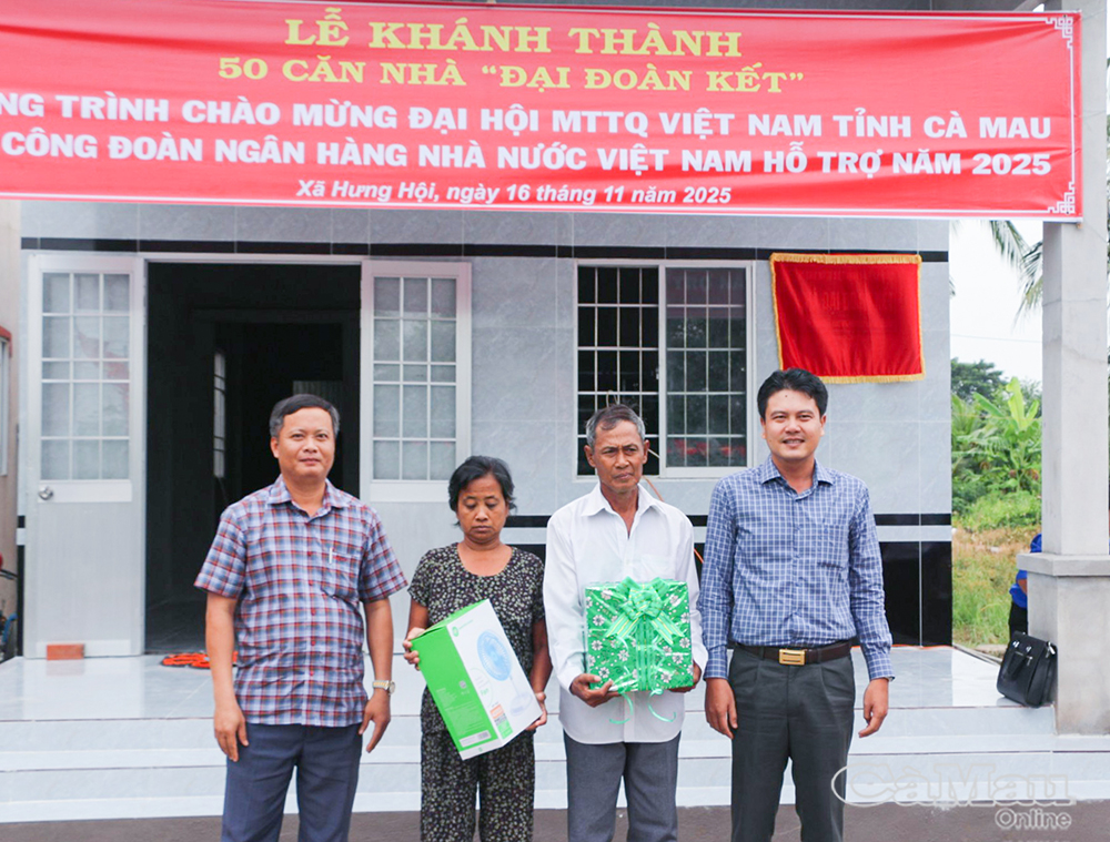 Báo Cà Mau Ngày 16/11, tại xã Hưng Hội, Uỷ ban MTTQ Việt Nam tỉnh Cà Mau tổ chức Lễ khánh thành và bàn giao 50 căn nhà Đại đoàn kết cho các hộ dân có hoàn cảnh khó khăn trên địa bàn tỉnh. Công trình là hoạt động thiết thực chào mừng Đại hội đại biểu Uỷ ban MTTQ Việt Nam tỉnh, do Công đoàn Ngân hàng Nhà nước Việt Nam tài trợ với tổng kinh phí 3 tỷ đồng.