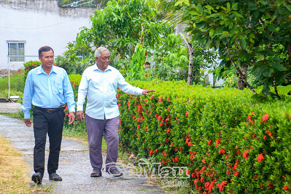 Ông Lâm Thu, người có uy tín trong đồng bào DTTS ở xã Tân Lộc (bên phải) tích cực tham gia và vận động bà con chung tay xây dựng nông thôn mới.