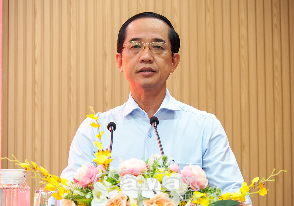 Đồng chí Hồ Thanh Thuỷ, Phó Bí thư Tỉnh uỷ, Chủ tịch Uỷ ban MTTQ Việt Nam tỉnh Cà Mau, phát biểu chỉ đạo tại hội nghị.