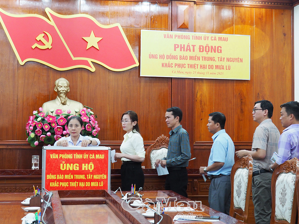 Chiều 25/11, Văn phòng Tỉnh uỷ Cà Mau tổ chức phát động ủng hộ đồng bào miền Trung, Tây Nguyên khắc phục thiệt hại do mưa lũ.