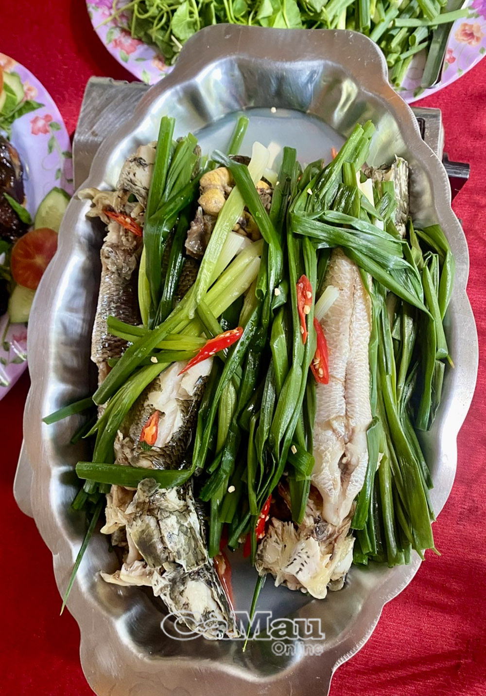 Hấp dẫn với món cá lóc hấp đầu hành.