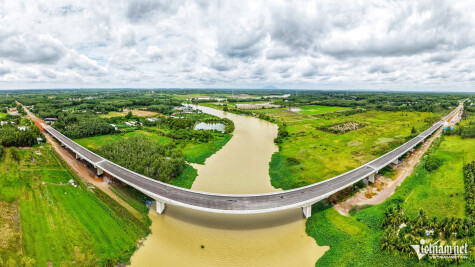 Hiện nhà thầu vừa hoàn thành thảm bê tông nhựa mặt cầu, chuẩn bị sơn vạch kẻ đường, lắp đặt hệ thống chiếu sáng.