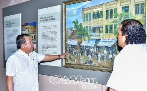 Ðồng chí Nguyễn Minh Luân (bìa trái), Uỷ viên Ban Thường vụ Tỉnh uỷ, Phó Chủ tịch UBND tỉnh tham quan, tìm hiểu về hoạt động bí mật của báo chí Cà Mau tại “Hồng Anh Thư Quán”, Phường 2, TP Cà Mau.