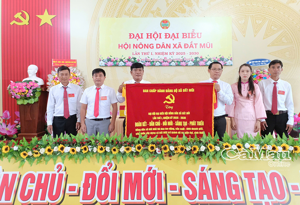 Ban Thường vụ Đảng uỷ xã Đất Mũi tặng bức trướng cho Đại hội đại biểu Hội Nông dân xã Đất Mũi lần thứ I, nhiệm kỳ 2025-2030.