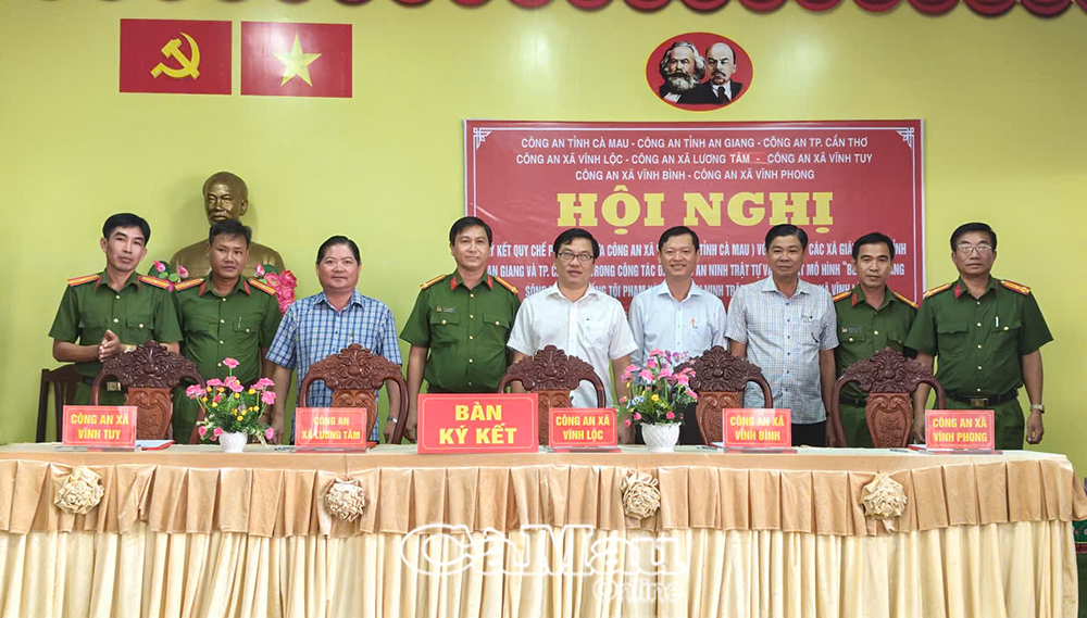Báo Cà Mau Công an xã Vĩnh Lộc (tỉnh Cà Mau) và Công an 4 xã Vĩnh Tuy, Vĩnh Phong, Vĩnh Bình (tỉnh An Giang) cùng xã Lương Tâm (TP Cần Thơ) vừa ký kết quy chế phối hợp bảo đảm an ninh, trật tự (ANTT) trên địa bàn giáp ranh. Đây là bước đi quan trọng, thể hiện tinh thần chủ động của lực lượng Công an cơ sở trong công tác phòng ngừa, đấu tranh, trấn áp tội phạm, giữ gìn bình yên vùng giáp ranh.