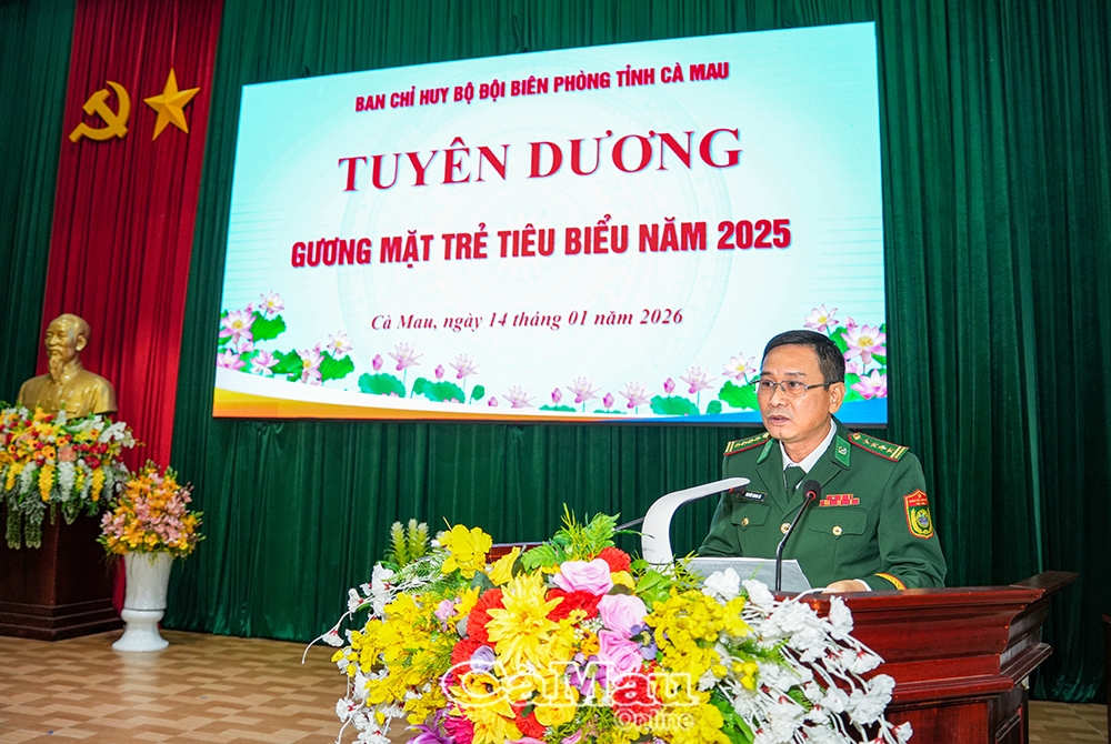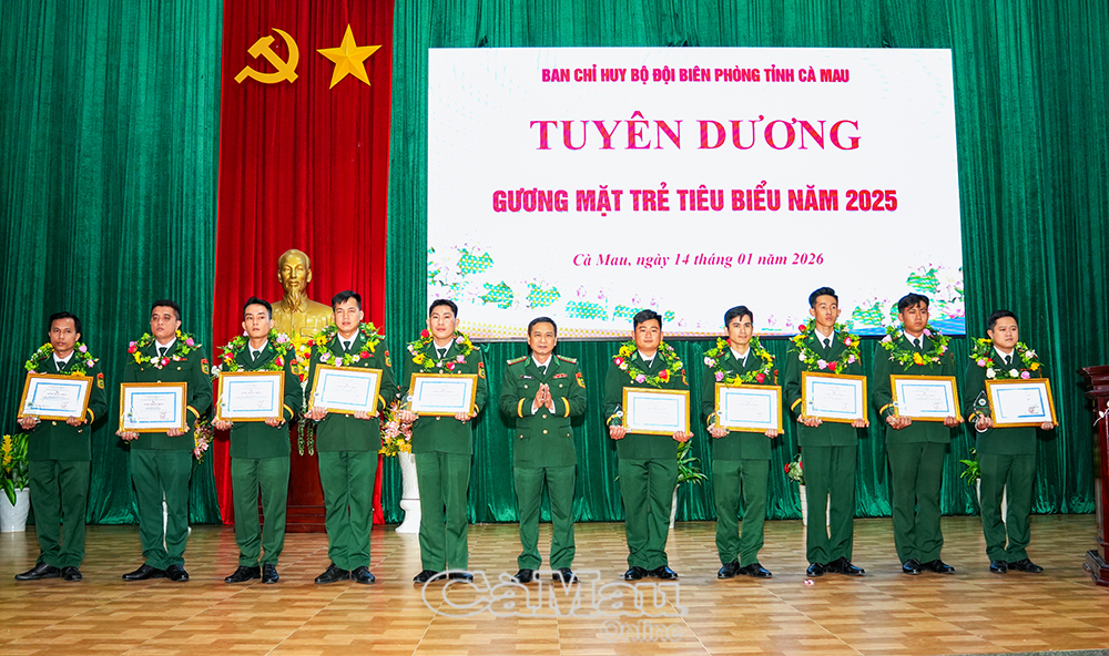 Sáng ngày 14/1, Ban Chỉ huy Bộ đội Biên phòng (BĐBP) tỉnh Cà Mau tổ chức tuyên dương 10 “Gương mặt trẻ tiêu biểu” năm 2025. Đây là những hạt nhân nòng cốt, góp phần quan trọng vào sự nghiệp bảo vệ an ninh biên giới và thực thi pháp luật trên biển.